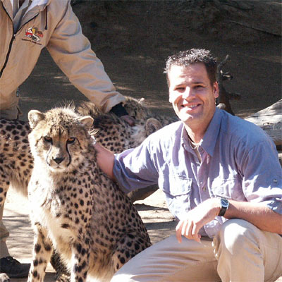 Hier aai ik een tam jachtluipaard in Oudshoorn.