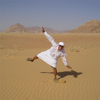 Springende bedoeïne, Wadi Rum, Jordanië.