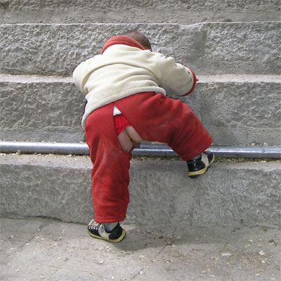 Jongetje met "poepbroek". Lhasa, Tibet.