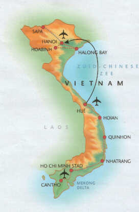 Minh City (Saigon) en eindigde in het noorden; Hanoi. We reisden hoofdzakelijk